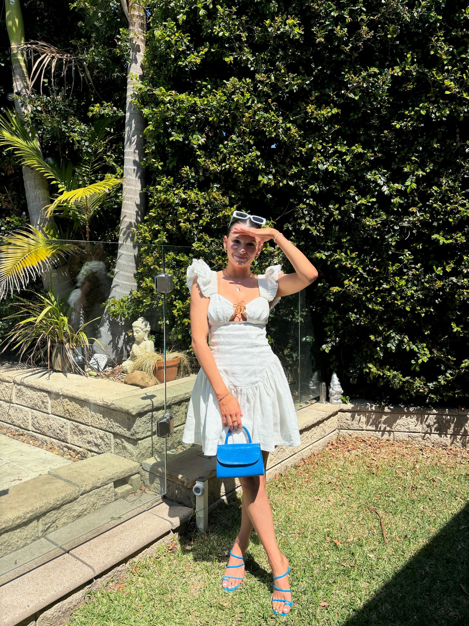 The sweetheart neckline, frilled shoulder straps and fit-and-flare silhouette of this mini dress allow for a uniquely feminine silhouette. Find Aje's signature tough femininity fused through the details - organic shaped hardware, raw edging and structured frills.