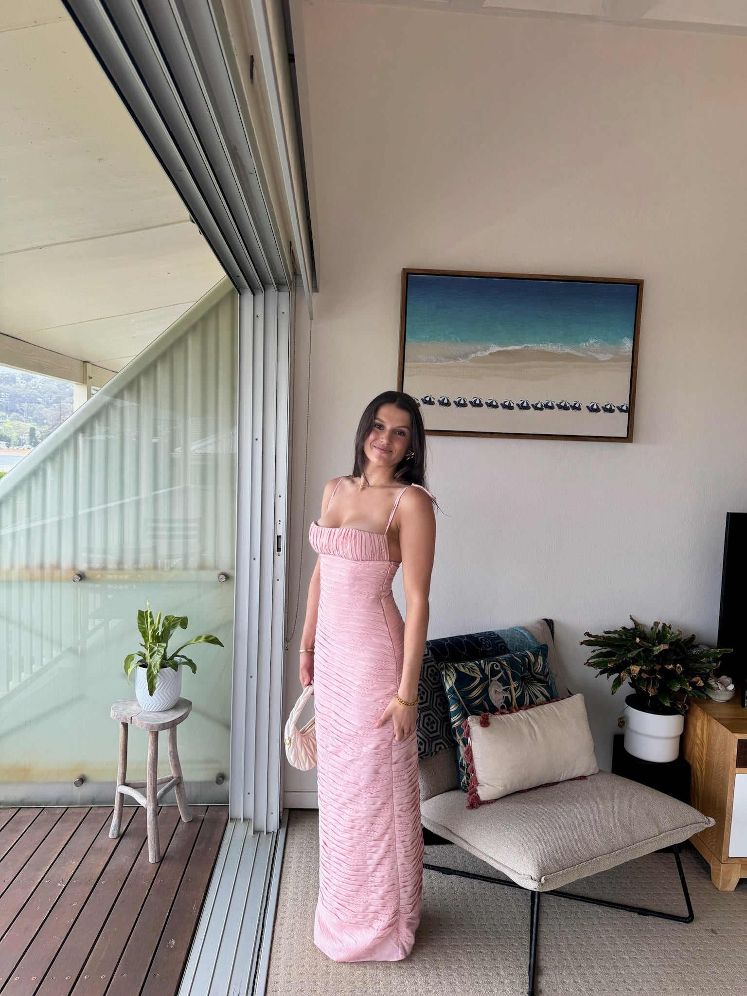 The Chacha Maxi Pink , a stunning hand draped maxi dress that will elevate your wardrobe with its detailing. Featuring a cropped bust and adjustable tying straps, this dress is both comfortable and stylish.