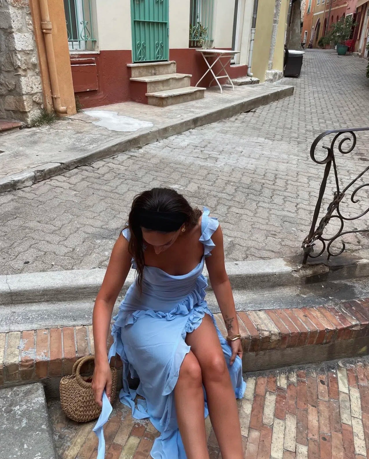 The House of CB Ariela Soft Blue Ruffle Maxi Dress is a romantic and elegant piece designed for special occasions. Crafted from lightweight georgette, it features a flattering cowl neckline, delicate ruffle-trimmed shoulder straps, and a thigh-high split that adds a touch of allure.
