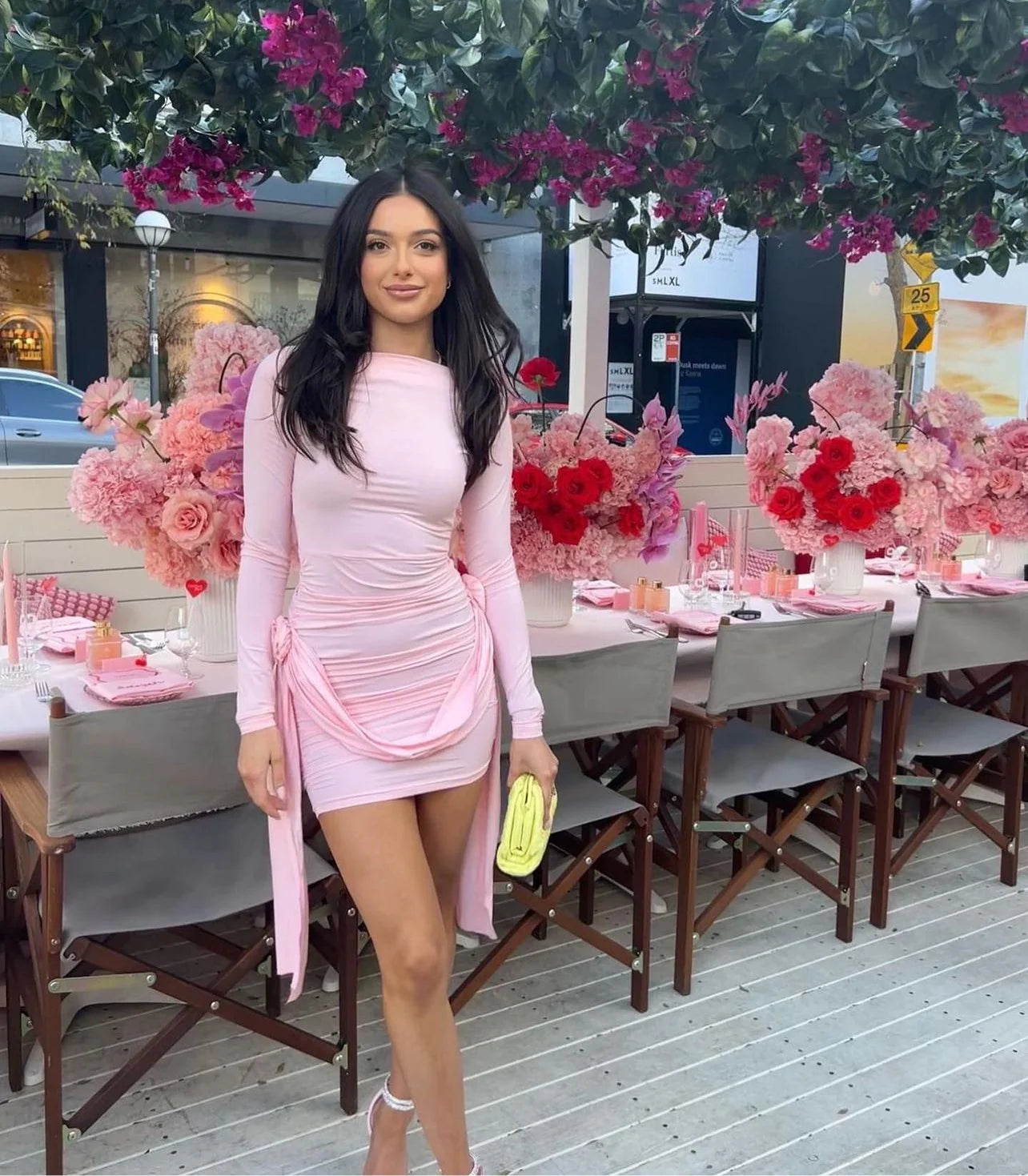 The Lioness Glory Mini Dress in Blush is a chic and feminine piece that combines elegance with a touch of playfulness. The dress offers a comfortable stretch and a flattering fit. It features a boat neckline, exaggerated sleeves, and ruching along the sides. A self-sash with rosette detailing adds a unique flair, while the pull-on design ensures ease of wear. This dress is unlined, making it ideal for layering or pairing with statement accessories.