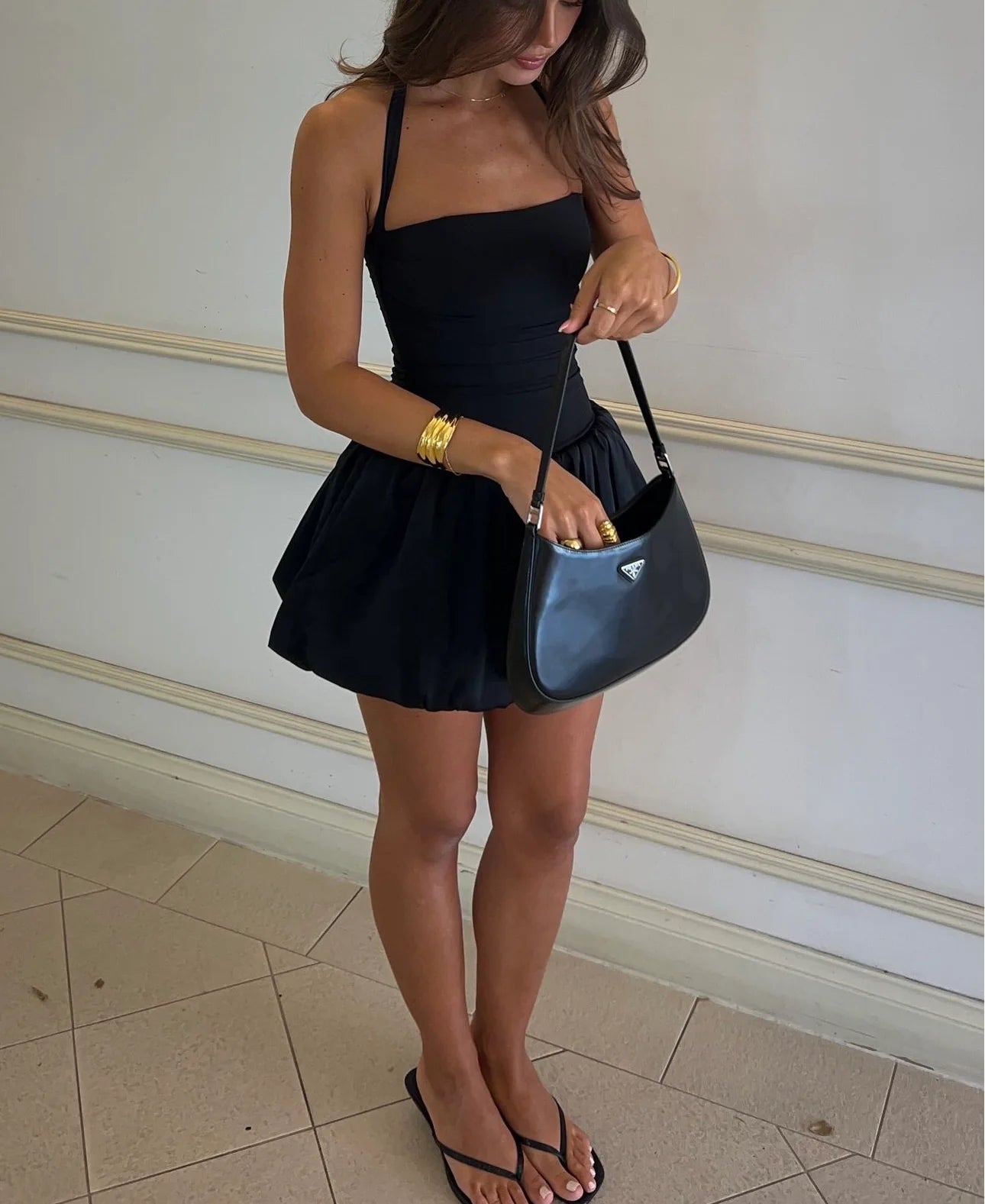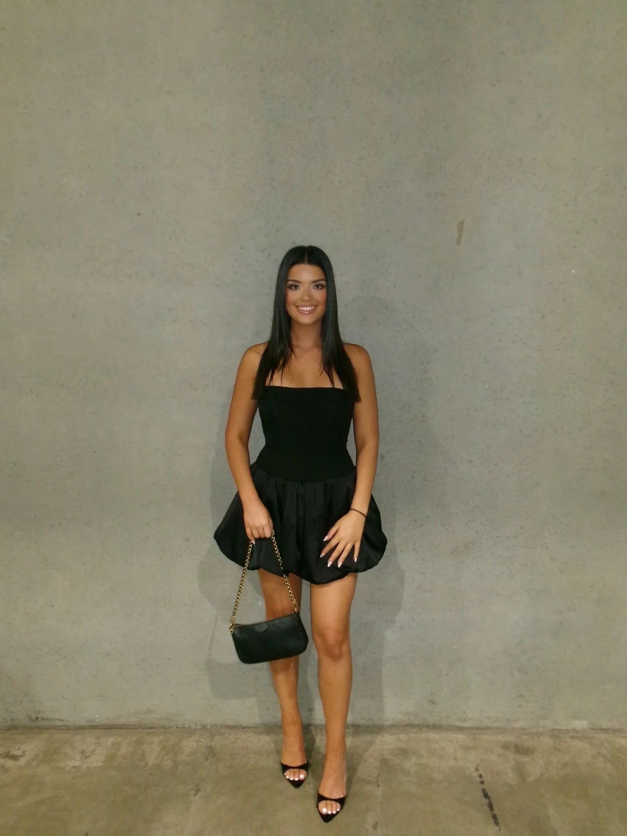 Playful silhouettes for memorable nights. The Ludmila mini dress is crafted from sumptuous georgette and satin to a structured bubble hem silhouette, complete with matching jersey shorts to temper the micro mini length. It’s framed with an adjustable halterneck for a supportive fit and is complete with corset-inspired lace-up detailing at the back.