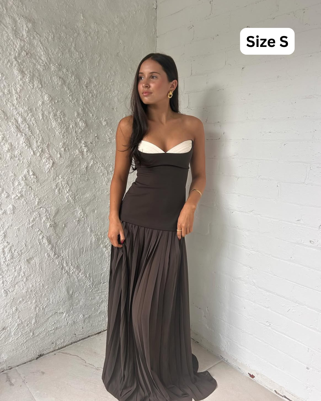 The Nicolette maxi dress, our best seller, showcases a stylish drop waist bodice that flows into a pleated fall skirt. Its gorgeous folded bodice design adds a touch of elegance and sophistication. Perfect for any occasion, this dress combines comfort with timeless beauty.