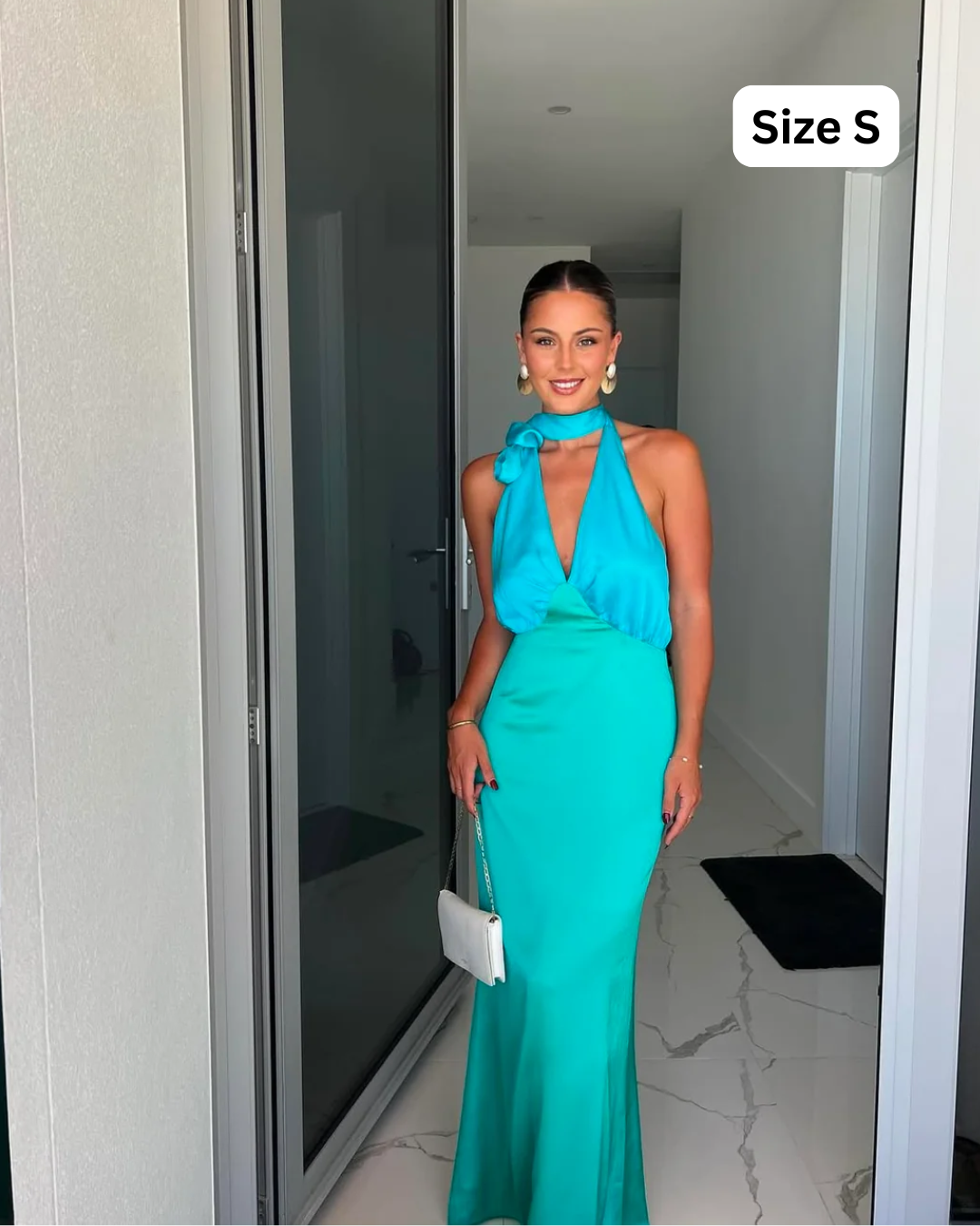 Made from smooth luxurious satin, the Oahu Slip Dress is the epitome of mermaid dressing. With an adjustable halter neck to suit all shapes, and fabricated in a sparkling shade of Aquamarine, whether you're looking for a bridesmaid dress or outfit for a black tie event, the Oahu Slip Dress is your answer.